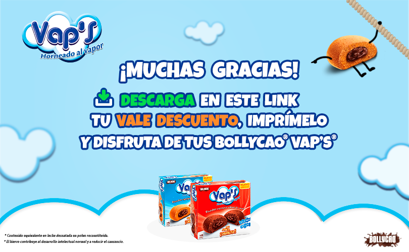 Si todavía no has probado Bollycao® Vap’s®… ¡es tu momento! Entra en el enlace, rellena el formulario y descárgate el descuento, ¡corre que se acaban!